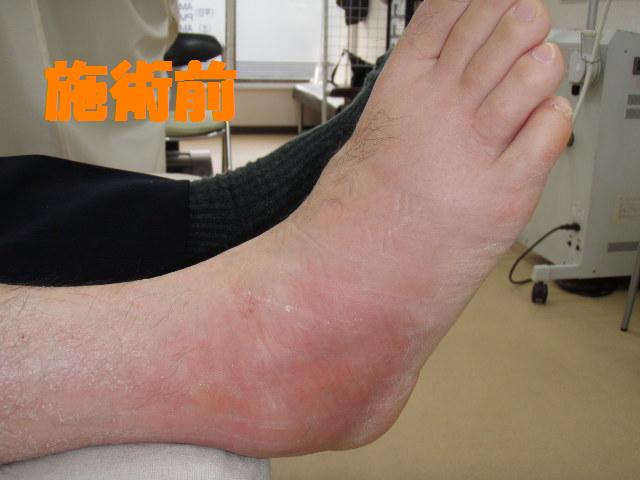 足首周りもかなり腫れていました。先生から数日すると内部の損傷が表面にでてきて内出血がでてくる可能性がると言われ、数日後に少し内出血がでてきて「あ~」やっぱり出てきたか~とちょっとイヤな感じがありました。(-_-;)