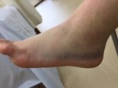 両足首とも腫れあがり特に右足首の内側の内出血がひどいです。